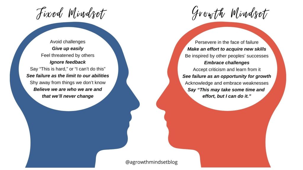 On the other hand, a person with a growth mindset believes that he or she can grow and evolve and change through training, learning and/or hard work: