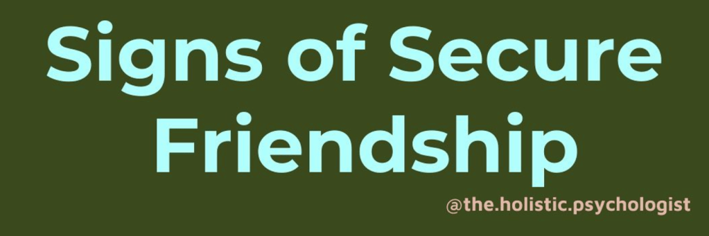 The Holistic Psychologist, Dr. Nivole LePera, posted these “Signs of Secure Friendship” on January 25. Each of these bullet points is a great reminder of what friendship looks like: